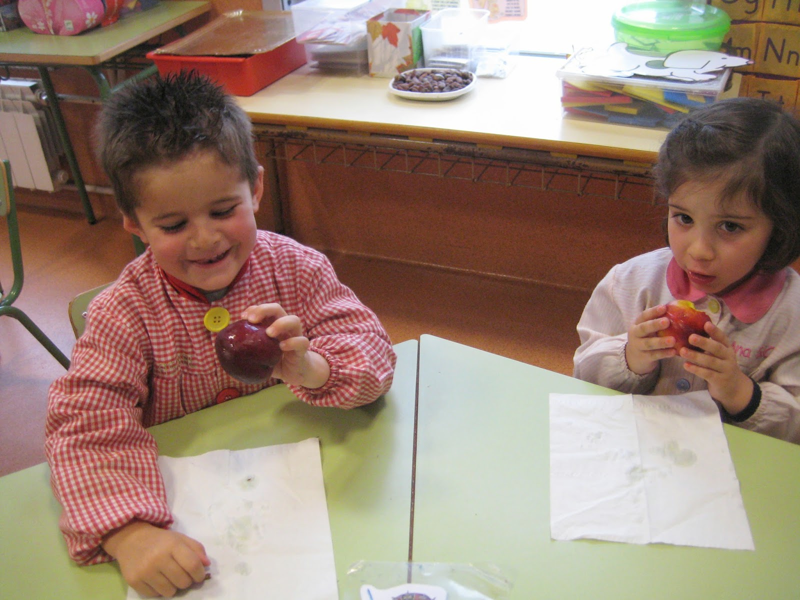 Seguindo coas merendas saudables no cole, o xoves tocounos merendar plátano e o venres peladillo (como nós lle soemos chamar á nectarina). Imos conseguindo comer a froita que nos trae Manolo cada día pero é certo que hai algúns e algunhas pementeir@s que non parecen moi habituados a saborear e disfrutar destes manxares naturais (a algúns ata lles costa tocar a froita coas mans) De todos xeitos, este programa de merendas saudables está servindo para que proben novos sabores e aprecien novas texturas, e coman polo menos un pouco de froita en lugar de merendar sempre galletas, bolos de elaboración industrial e cousas dese tipo. A min sorprendeume ver algunhas caras cando probaron certas froitas e gustoume ver como moitos nenos/as comeron perfectamente estas merendas tan saudables.
